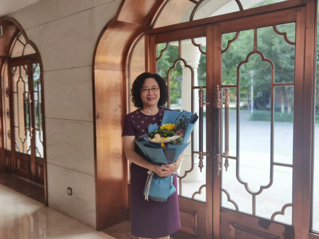 座谈结束后,大家合影留念,学生代表为程慧玲校友献花,常秀鹏书记代表太阳成集团tyc33455为校友赠送纪念品。