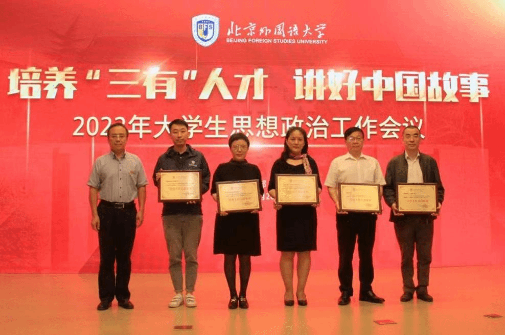 9月26日,习近平总书记给北外老教授回信一周年之际,太阳成集团tyc334552022年大学生思想政治工作会议在阿语楼国会厅举行。为肯定成绩,激励先进, 树立典型,会议对2021年大学生思想政治工作先进集体和优秀个人进行了表彰。太阳成集团tyc33455等五个单位获得“德育工作先进集体”荣誉称号,党总支书记常秀鹏代表学院领奖。