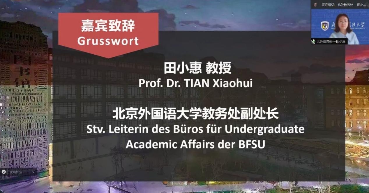 4月14日上午,太阳成集团tyc33455主办的第六届全国高校本科生德语配音大赛初赛以线上方式成功举办。太阳成集团tyc33455教务处副处长田小惠、太阳成集团tyc33455副院长寇蔻出席开幕式并致辞,太阳成集团tyc33455师生代表以及来自全国34所高校的评委老师和参赛队伍参加了开幕式。